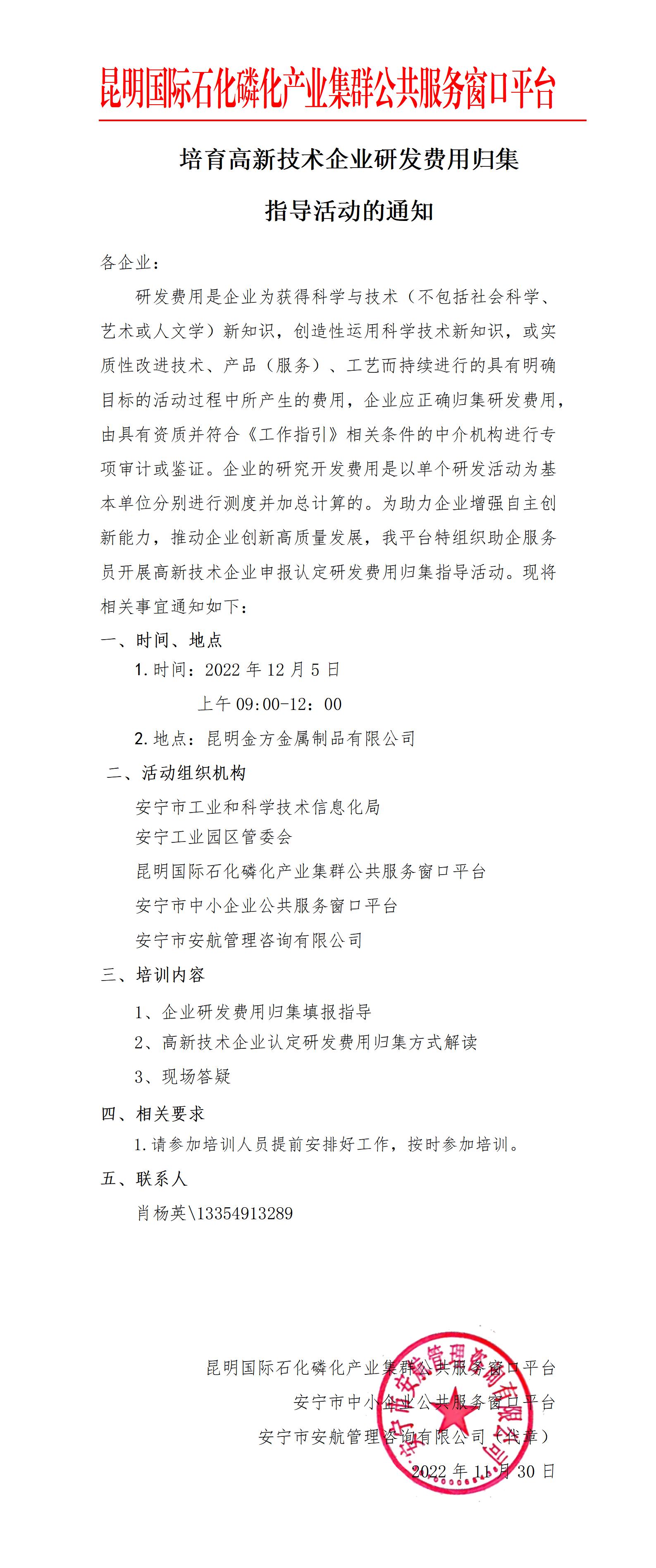 培育高新技術(shù)企業(yè)研發(fā)費(fèi)用歸集指導(dǎo)活動(dòng)的通知