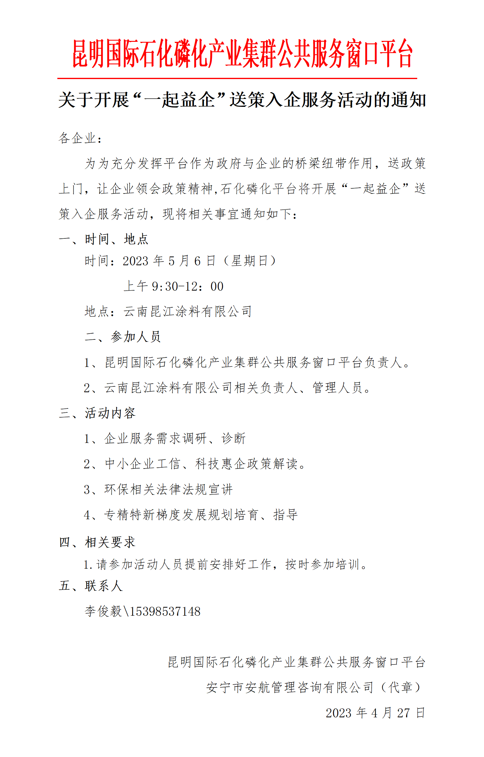 關(guān)于開展“一起益企”送策入企服務(wù)活動(dòng)的通知