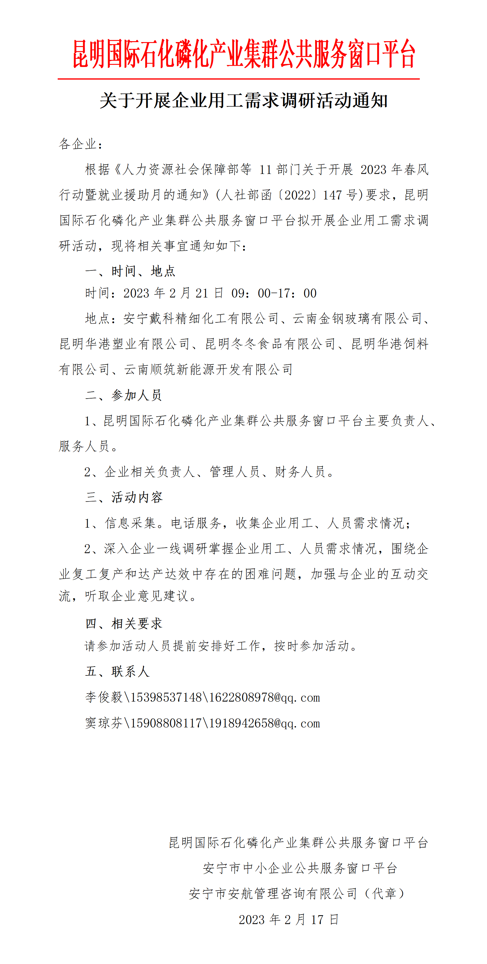 石化磷化平臺企業(yè)用工需求調(diào)研活動