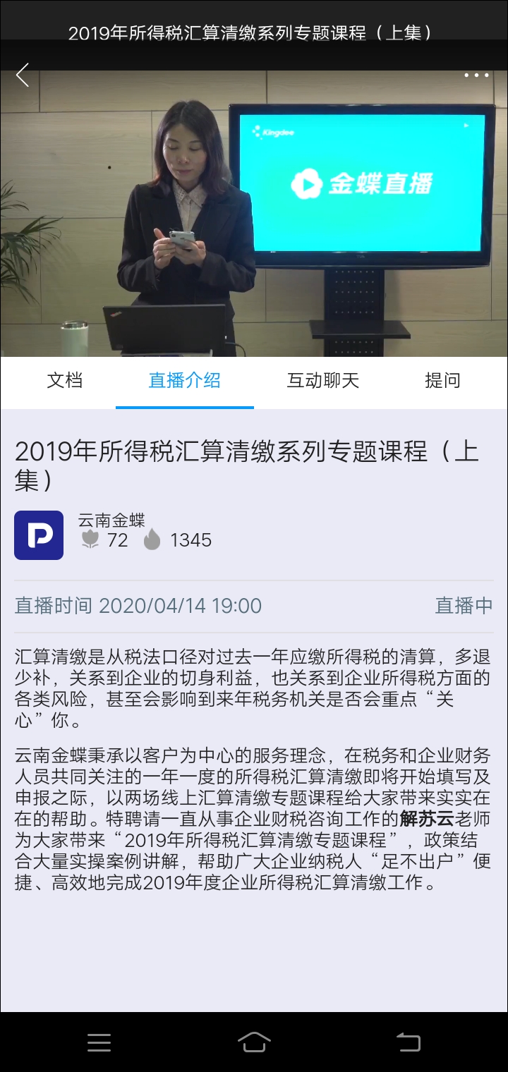 2020年4月14日-15日,由云南省中小企業(yè)公共服務平臺、昆明市中小企業(yè)公共服務平臺、昆明市中小企業(yè)公共服務窗口平臺主辦,金蝶軟件(中國)有限公司昆明分公司承辦,盤龍區(qū)中小企業(yè)服務中心、昭通市中小企業(yè)公共服務窗口平臺、昆明國際石化磷化產業(yè)集群平臺、云科“圈子匯”眾創(chuàng)空間、昆明庫米管理咨詢有限公司、云南浩宏產業(yè)園協(xié)辦的2019年所得稅匯算清繳系列專題課程(上、下集)》兩場線上匯算清繳專題直播課程成功舉辦,活動共吸引2850多人進入直播平臺學習。