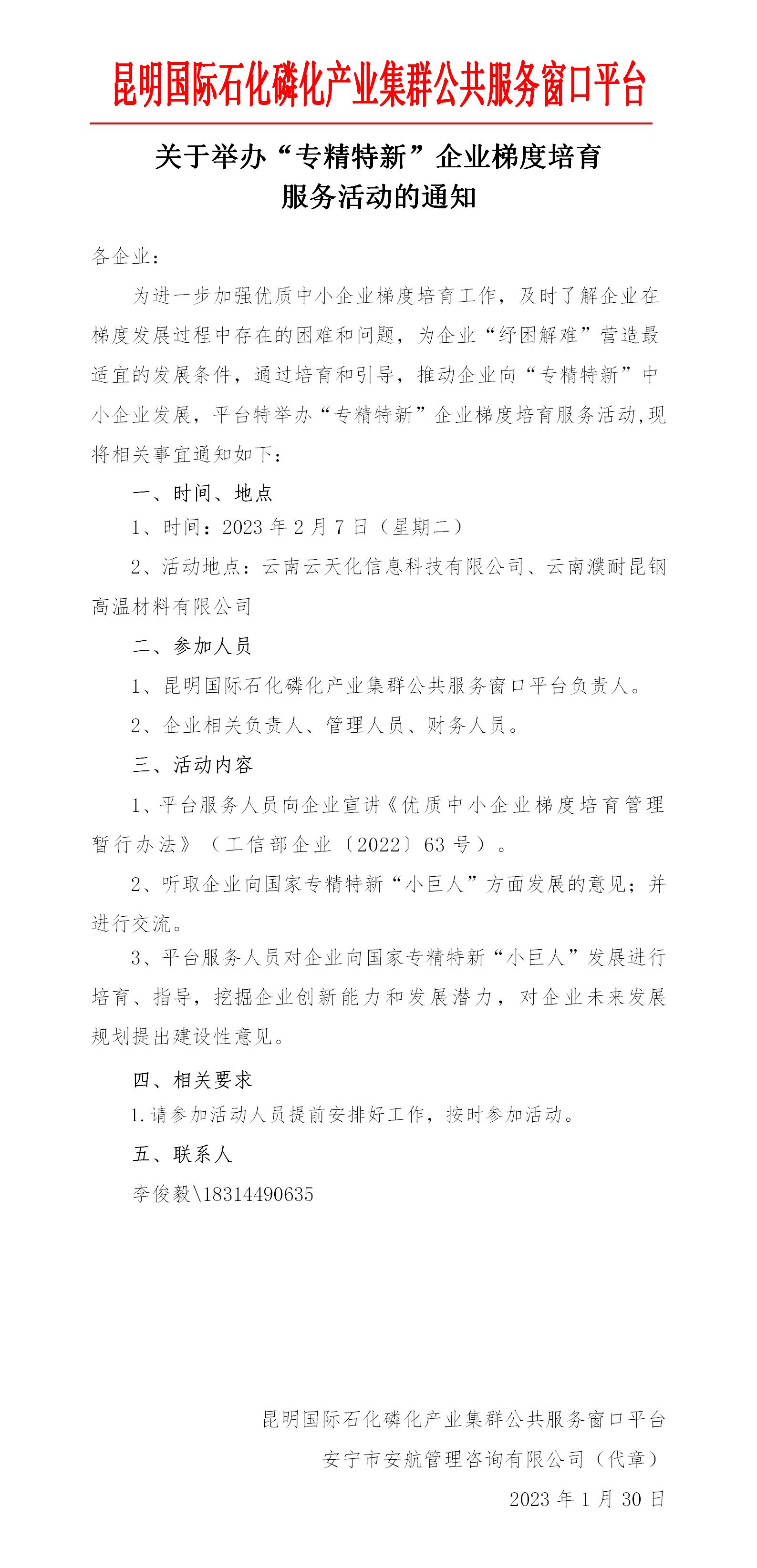 關(guān)于舉辦“專精特新”企業(yè)梯度培育 服務(wù)活動(dòng)的通知