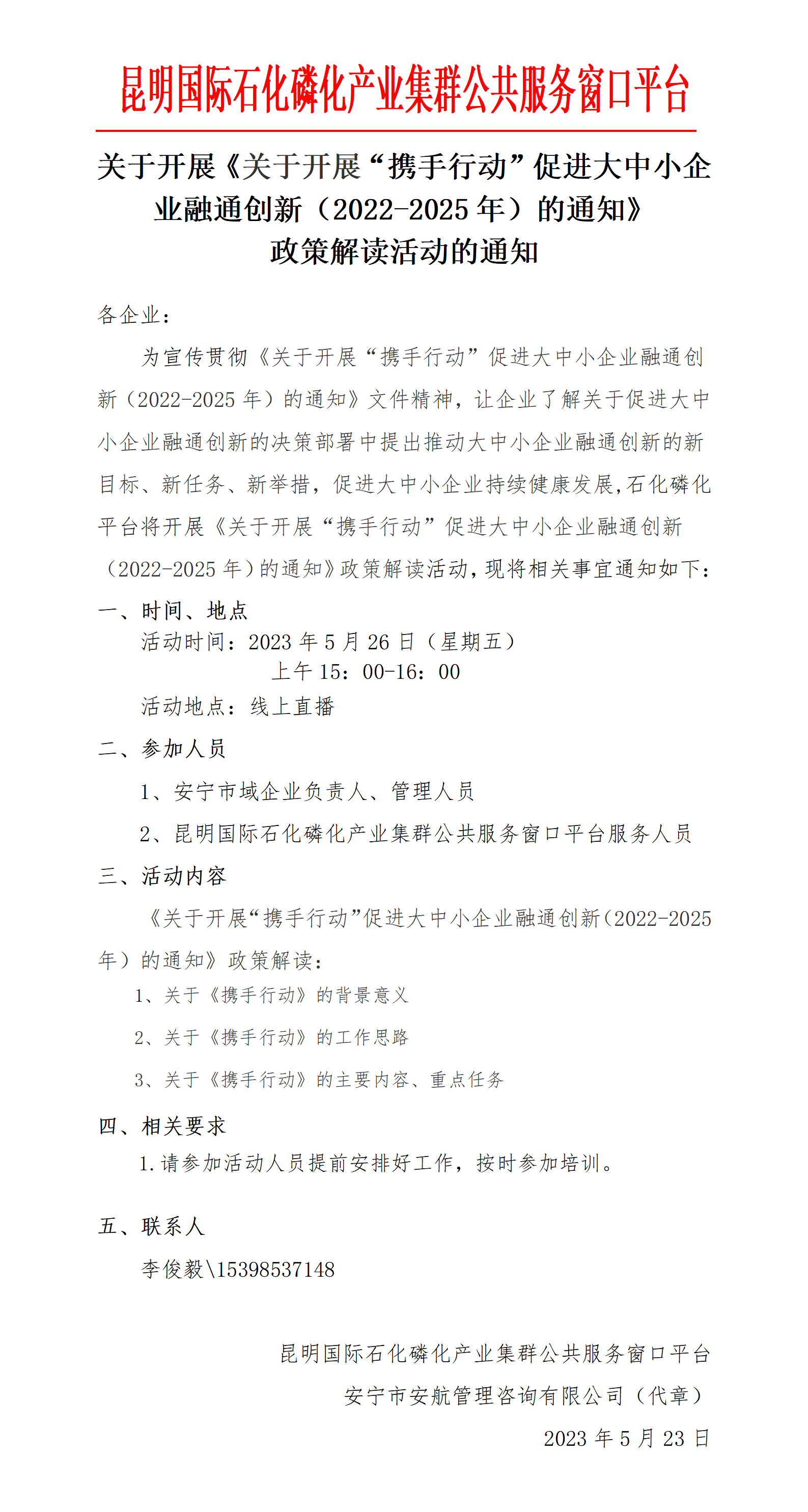 關(guān)于開展《關(guān)于開展“攜手行動(dòng)”促進(jìn)大中小企業(yè)融通創(chuàng)新(2022-2025年)的通知》政策解讀活動(dòng)的通知