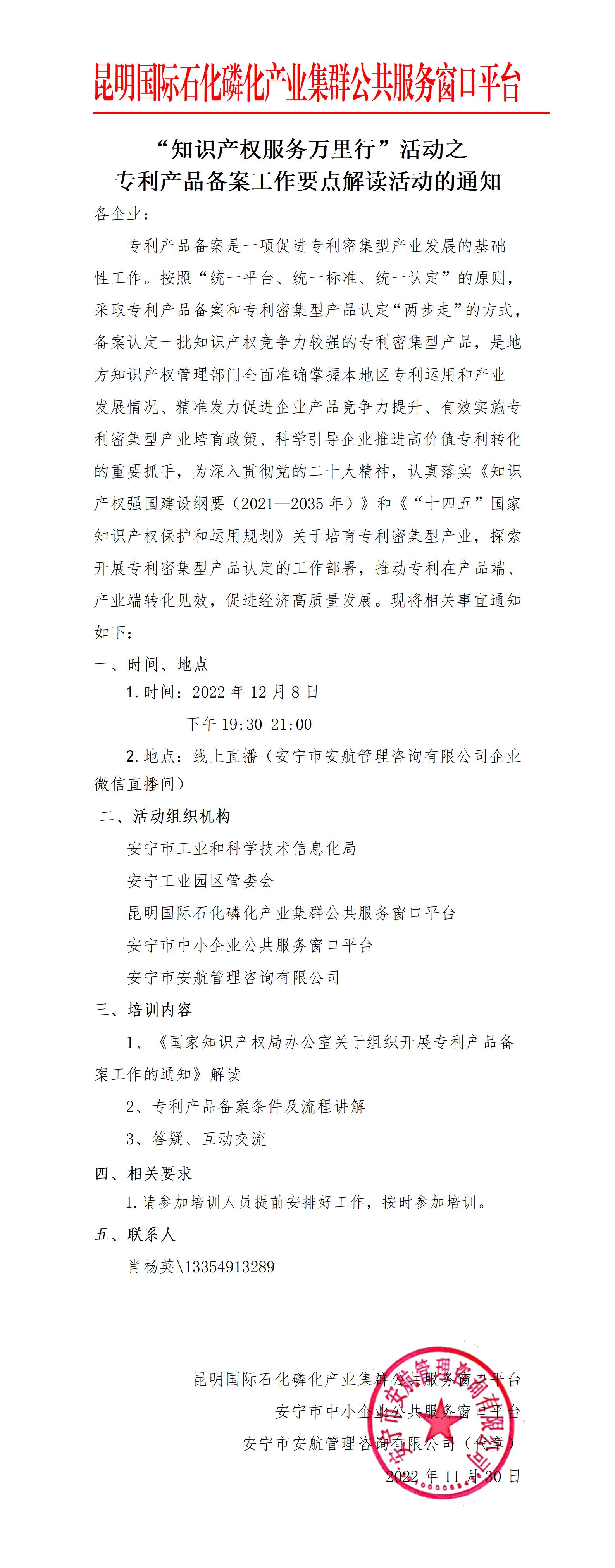 “知識(shí)產(chǎn)權(quán)服務(wù)萬里行”活動(dòng)之 專利產(chǎn)品備案工作要點(diǎn)解讀活動(dòng)的通知