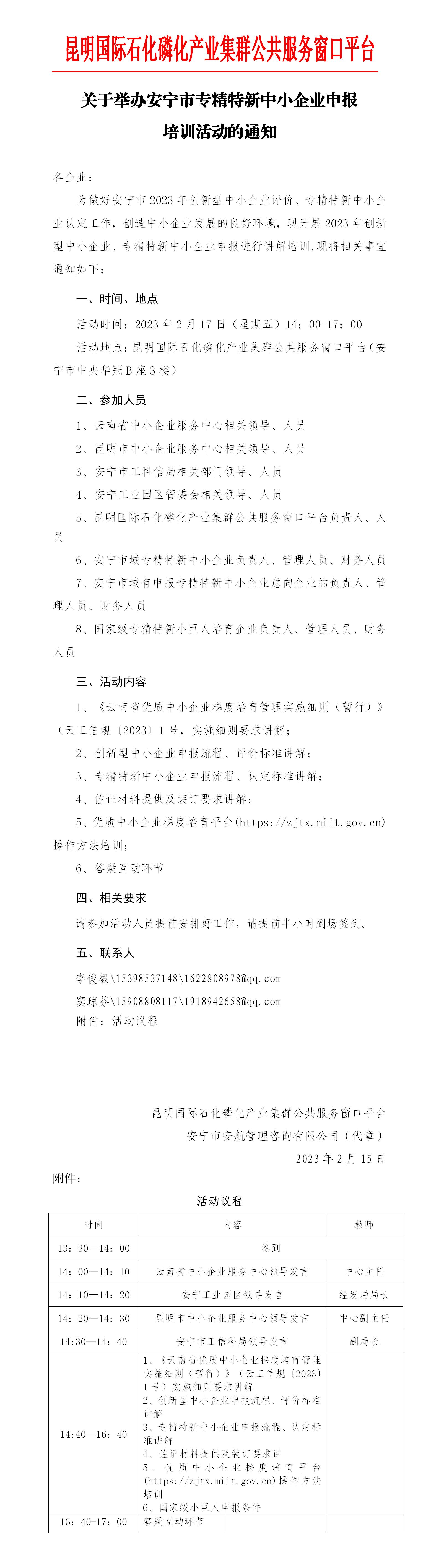 關(guān)于舉辦安寧市專精特新中小企業(yè)申報(bào) 培訓(xùn)活動(dòng)的通知